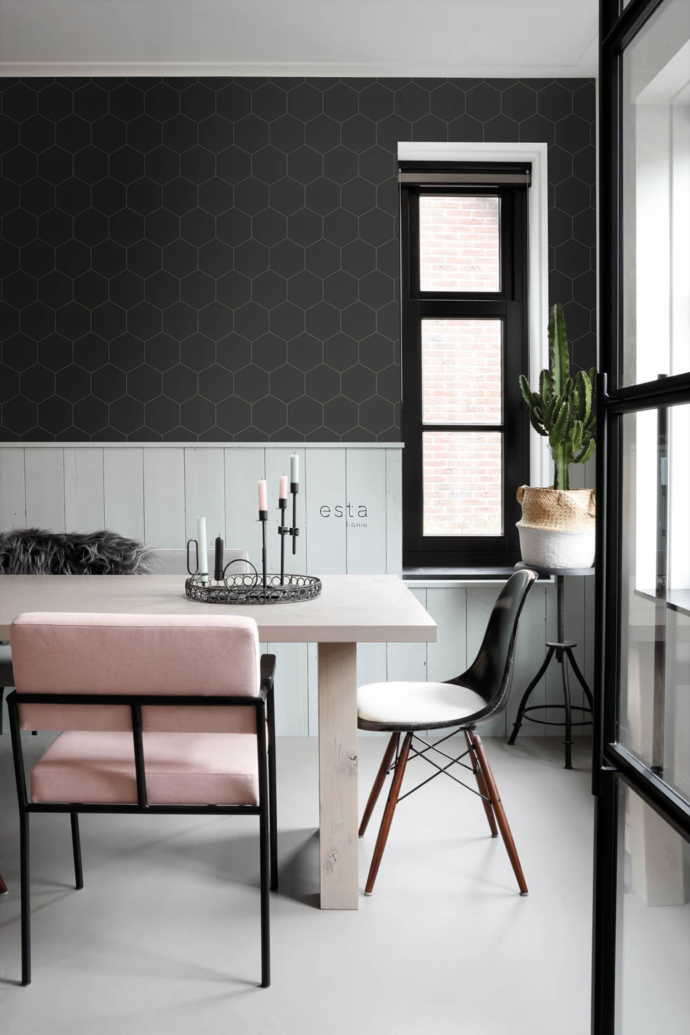 Properties "Non-woven wallpaper minimalist honeycomb pattern black 139313"