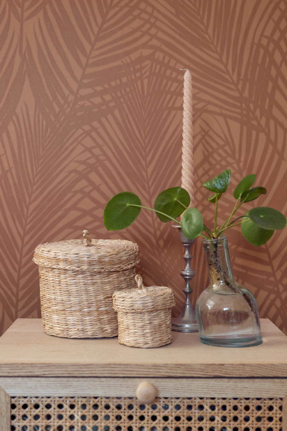 This brown non woven wallpaper in earthy tones features a nature inspired pattern on a smooth matte surface. The warm colours create a calm and grounded atmosphere perfect for boys girls and teens. With a 26.5 cm drop match the design flows naturally across the wall. Washable lightfast and dry strippable.