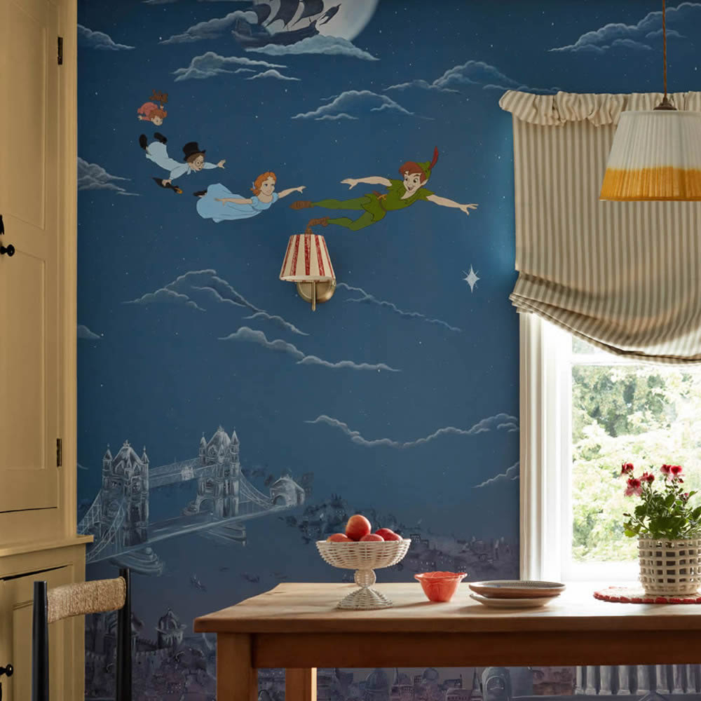 A blue mural DDIW217293 on the popular children's theme Peter Pan and Peter Pan and Tinkerbell makes children's hearts beat faster. Wall pictures bring individual walls in the children's room to life and put your child's favorite motifs in the spotlight. Wendy, Jhon and Michael in a fairytale design take little boys and girls on a playful fantasy adventure. The structure of this mural is smooth and the surface is matte. The size is 0.68 x 10.05 m. Browse through Sanderson's wide range of products and discover many other matching blue wallpapers and wall pictures. Design the walls in a child-friendly and playful way in blue with your child's favorite motifs. Blue murals offer the opportunity to design the walls to match the curtains and carpets in the children's room. For non-woven murals, the paste can be applied directly to the wall. Processing is therefore quick and easy. Peter Pan wall pictures bring individual walls to life and put the favorite motifs of babies, kids and teenagers in the spotlight.