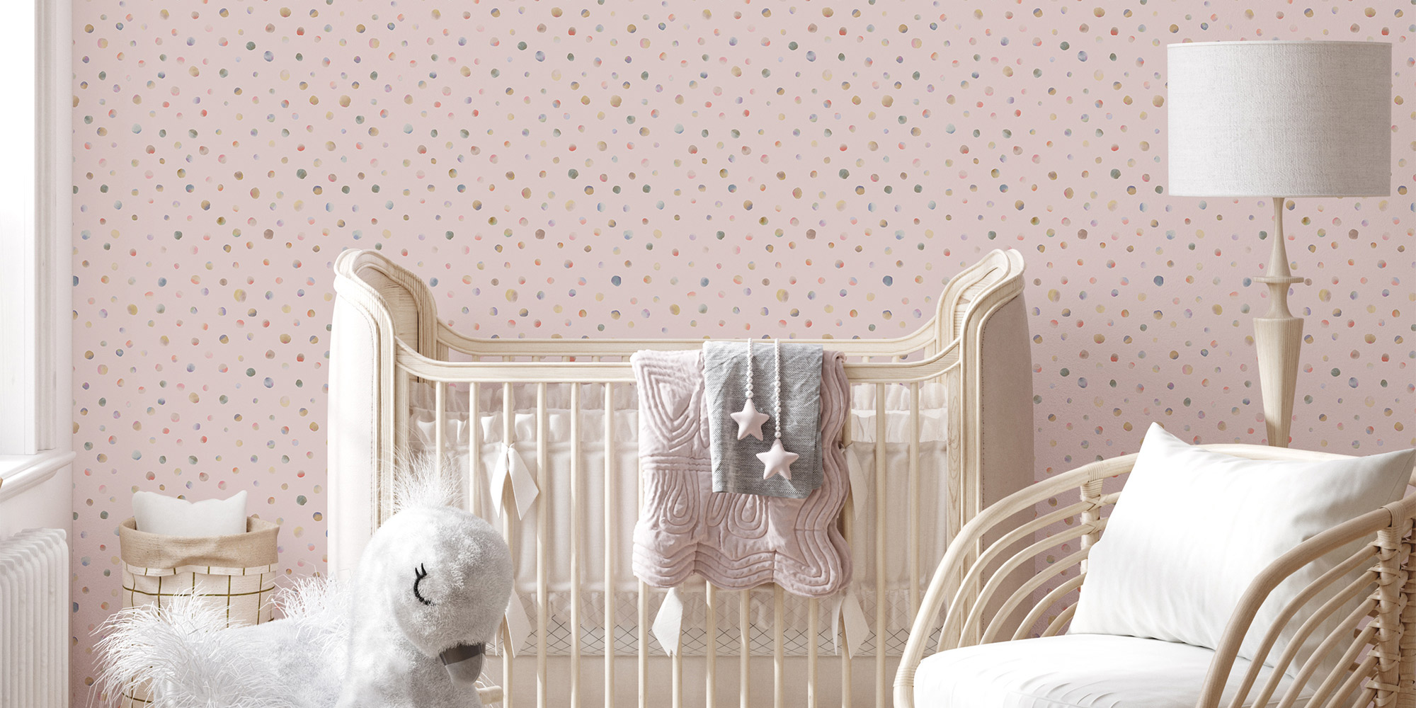 Kleine Punkte tanzen über die Wände im Kinderzimmer und schaffen so ein niedliches Ambiente.
