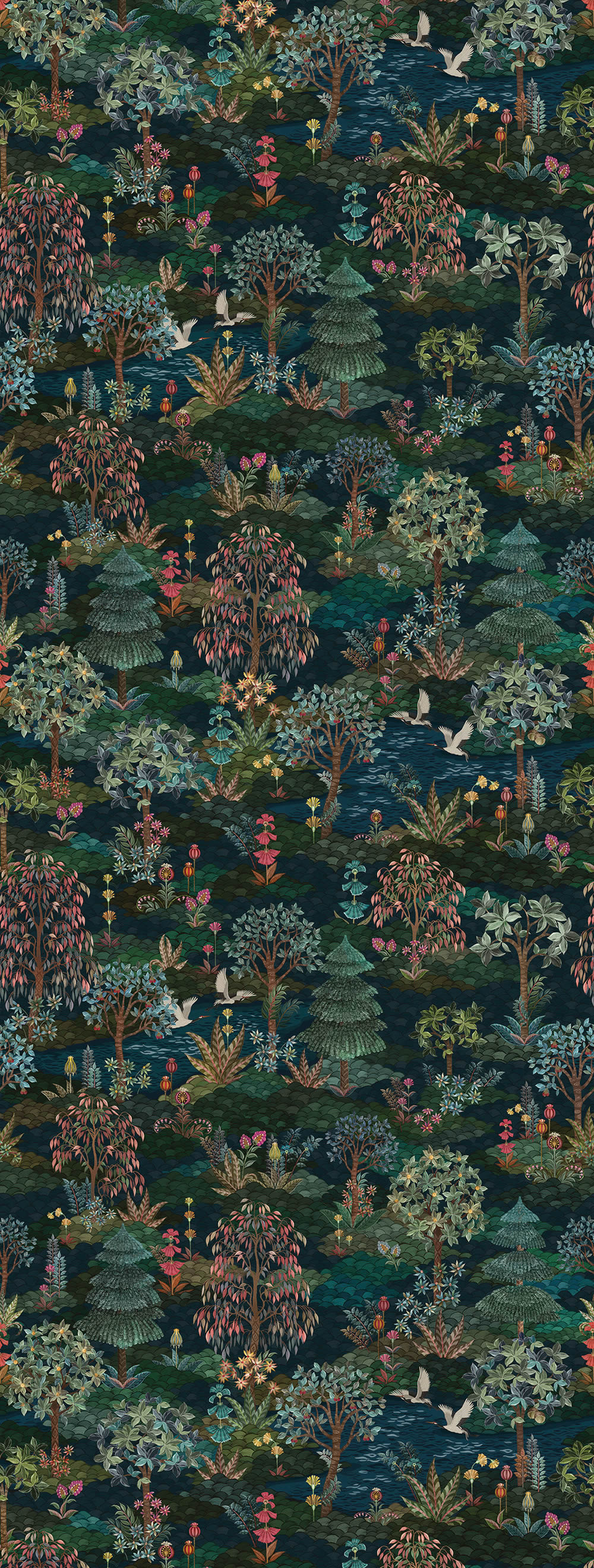 Wandbild Chinesischer Garten mehrfarbig Bäume Pflanzen Tiere blau 333161