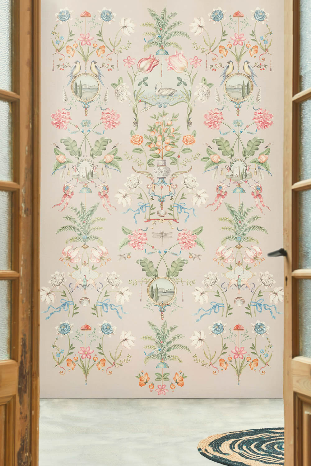 Wandbild mit elegantem Blumenmuster: Feine Blütenranken, kunstvolle Schwäne und detailreiche Naturmotive schmücken die glatte, matte Oberfläche in sanften Beige- und Cremetönen. Das harmonische Design verleiht Räumen eine romantische und stilvolle Atmosphäre. Dieses hochwertige Vliestapeten-Wandbild von Eijffinger ist nicht nur ein optisches Highlight, sondern auch praktisch - es ist waschbeständig, gut lichtbeständig und kann trocken restlos entfernt werden. Dank der Wandklebetechnik ist das Anbringen besonders einfach. Perfekt für Kinderzimmer, Teenager-Zimmer oder Wohnbereiche mit natürlicher Eleganz.