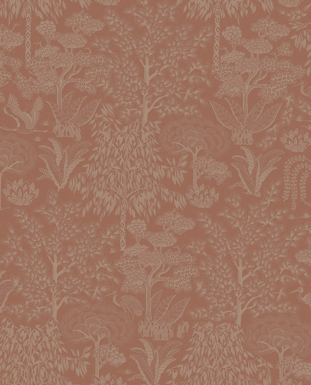 Vliestapete mit asiatisch inspiriertem Naturmotiv in Terrakotta und Bronzetönen. Das filigrane Muster zeigt elegante Blätter und anmutige Schneereiher, die eine ruhige und stilvolle Atmosphäre schaffen. Die glatte Oberfläche kombiniert glänzende und matte Elemente für ein edles Gesamtbild. Ideal für Kinderzimmer, Mädchenzimmer oder Teenager-Räume. Dank der Wandklebetechnik ist die Tapete leicht anzubringen und kann trocken restlos entfernt werden. Zudem ist sie waschbeständig, gut lichtbeständig und schwer entflammbar.