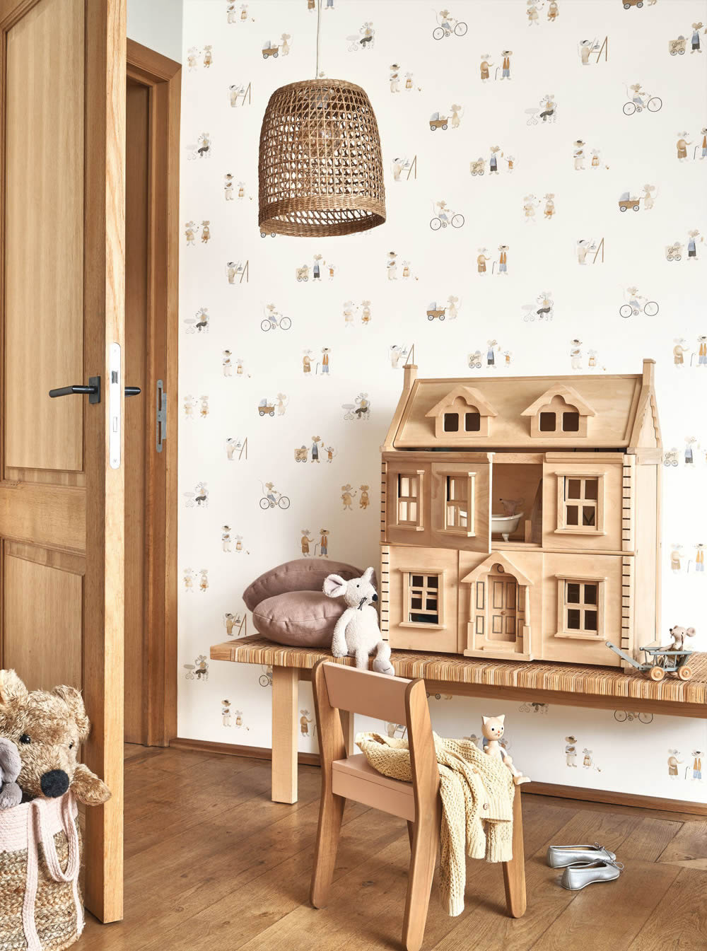 Vliestapete mit liebevoll gestalteten kleinen Häusern in sanften Beigetönen auf weißem Hintergrund. Das detailreiche Stadtmotiv verleiht dem Kinderzimmer eine gemütliche und verspielte Atmosphäre. Die glatte, matte Oberfläche sorgt für eine stilvolle Optik. Dank der Wandklebetechnik ist die Anbringung besonders einfach. Zudem ist die Tapete gut lichtbeständig, waschbeständig und kann trocken restlos entfernt werden. Mit einem versetzten Ansatz von 21 cm entsteht ein harmonisches Musterbild.