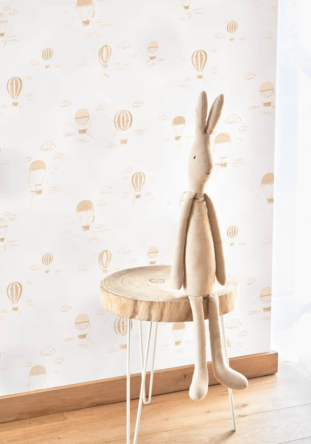 Wandbild Vlies Hasen im Heißluftballon - traumhafte Abenteuerreise über den Wolken in sanften Pastelltönen. Dieses hochwertige Wandbild zeigt niedliche Hasen, die in Heißluftballons durch den Himmel schweben, umgeben von leichten Wolken. Die zarten Farben und liebevollen Illustrationen schaffen eine beruhigende und verspielte Atmosphäre. Die glatte, matte Oberfläche unterstreicht die hochwertige Optik. Ansatzfrei für eine nahtlose Gestaltung, waschbeständig und lichtbeständig für langanhaltende Farbbrillanz. Perfekt für Baby- und Kinderzimmer.