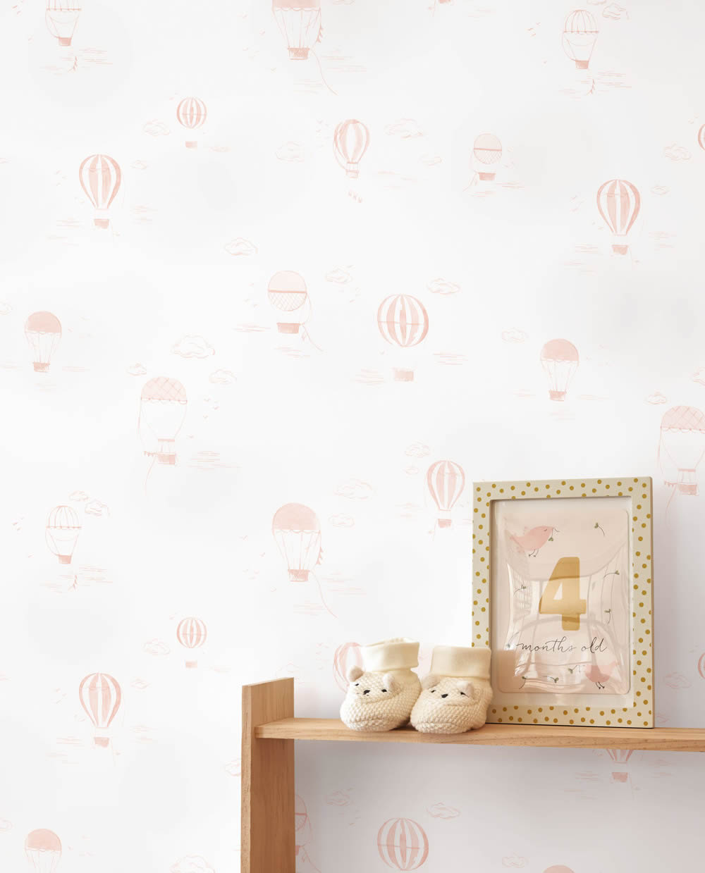Vliestapete mit verspielten Heißluftballons in sanftem Rosaton auf weißem Hintergrund. Das luftige Design verleiht dem Kinderzimmer eine traumhafte und beruhigende Atmosphäre. Die glatte, matte Oberfläche sorgt für eine stilvolle Optik. Dank der Wandklebetechnik ist die Anbringung besonders einfach. Zudem ist die Tapete gut lichtbeständig, waschbeständig und kann trocken restlos entfernt werden. Mit einem geraden Ansatz von 21 cm entsteht ein harmonisches Musterbild.