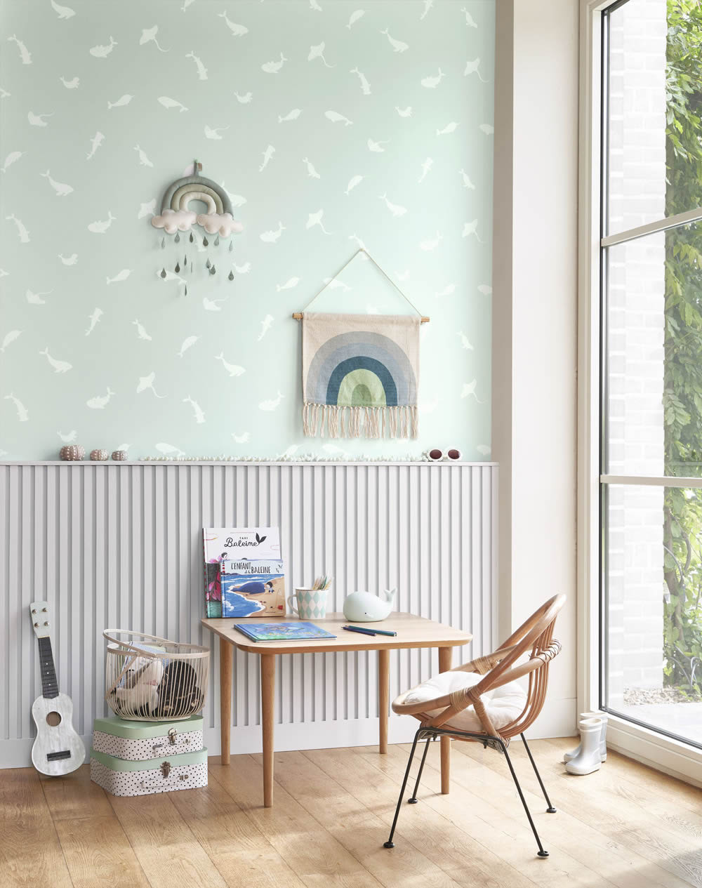 Vliestapete mit niedlichen Meerestieren wie Fischen und Seepferdchen in sanftem Mintgrün auf hellem Hintergrund. Das maritime Design schafft eine ruhige und freundliche Atmosphäre im Kinderzimmer. Die glatte, matte Oberfläche sorgt für eine moderne Optik. Dank der Wandklebetechnik ist die Anbringung besonders einfach. Zudem ist die Tapete gut lichtbeständig, waschbeständig und kann trocken restlos entfernt werden. Mit einem versetzten Ansatz von 21 cm entsteht ein harmonisches Musterbild.