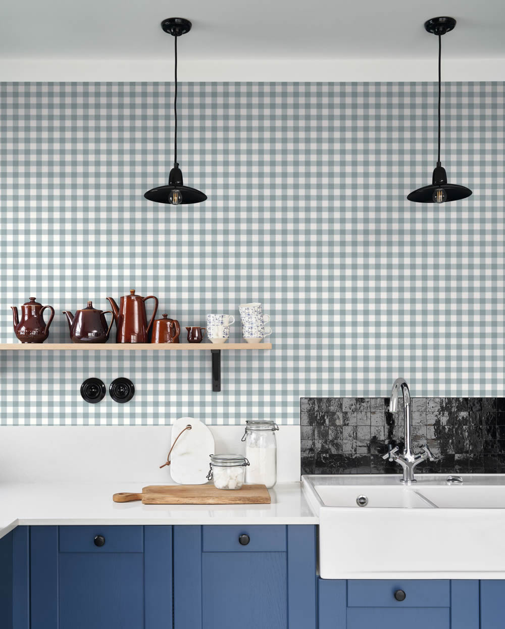 Landhausoptik Vliestapete Gingham Kariert mint grün COUTD89267202 _L1